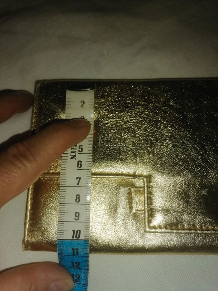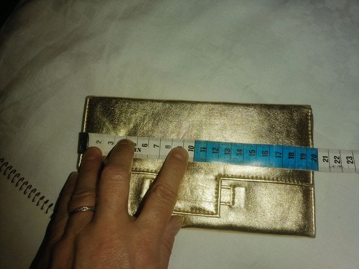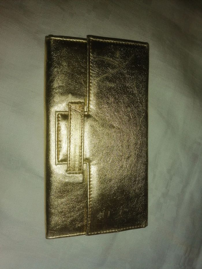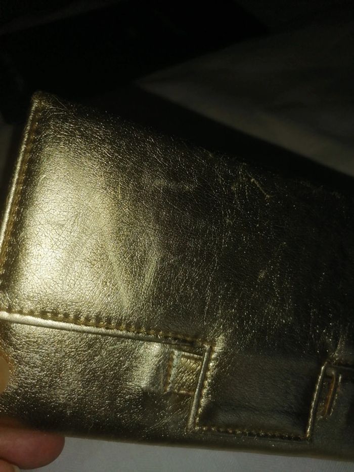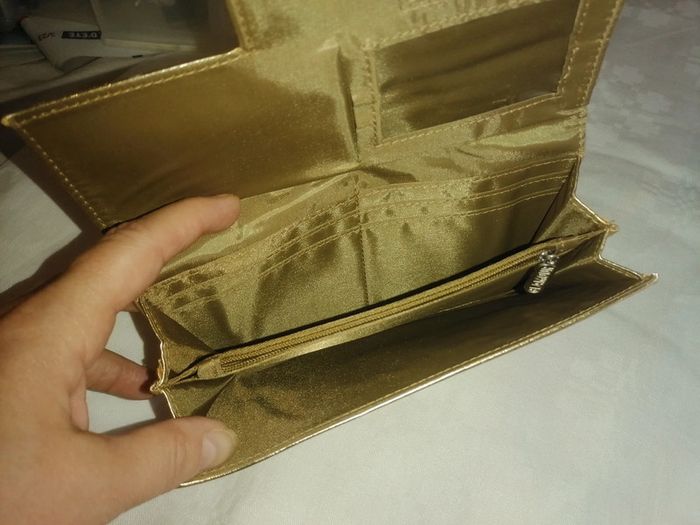 Pochette mariage dorée idéal pour y mettre retouche maquillage, accessoires cheveux et mouchoirs... Une rayure qui se voir à contre jour, mais qui n'est pas flagrante