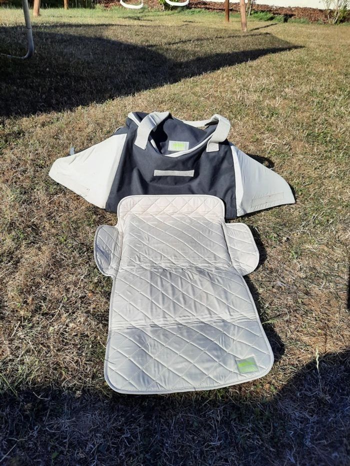 Seul l'attache pour tetine est cassée le reste est neuf utilisé à peine 2 fois