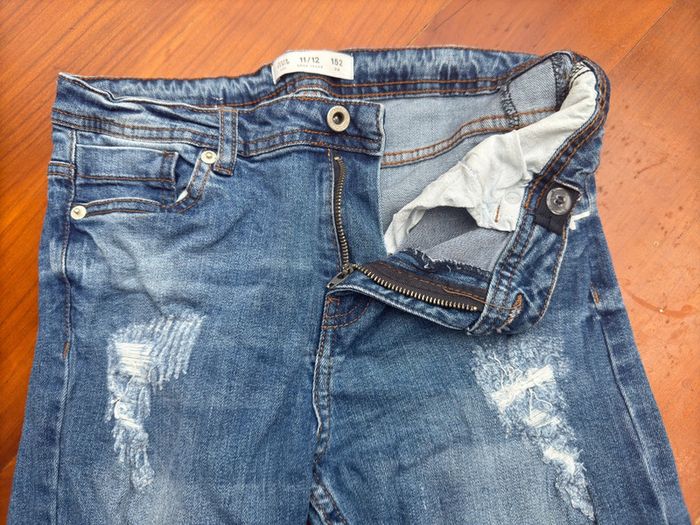 Jean de la marque Lefties en taille 11-12 ans / 152cm. La taille se ressert pour deux boutons. Composition : 98% coton, 2% élasthanne. Lavable en machine à 30°.