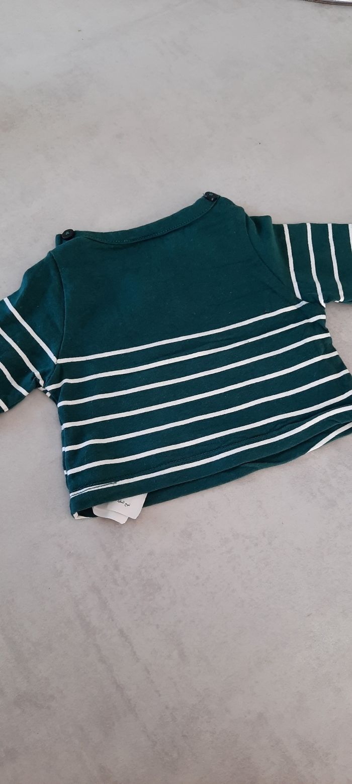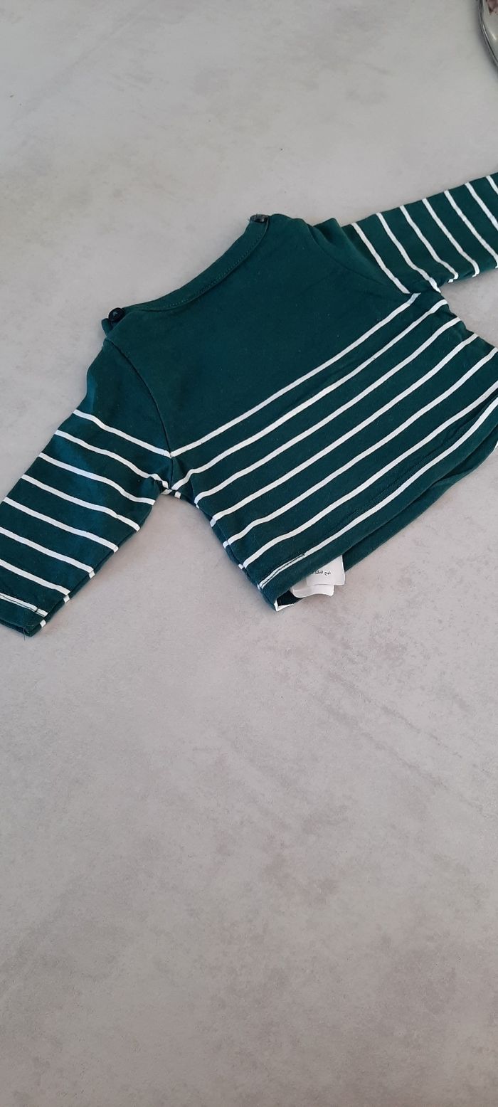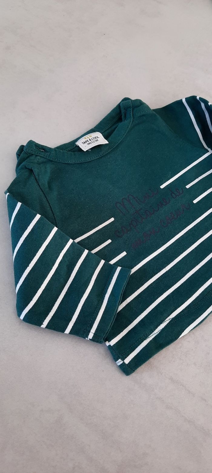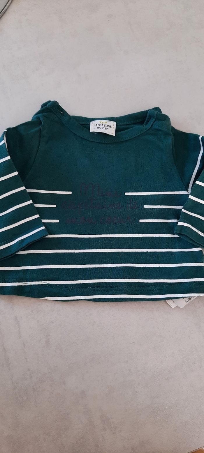 T-shirt vert et blanc 1mois Très bon état