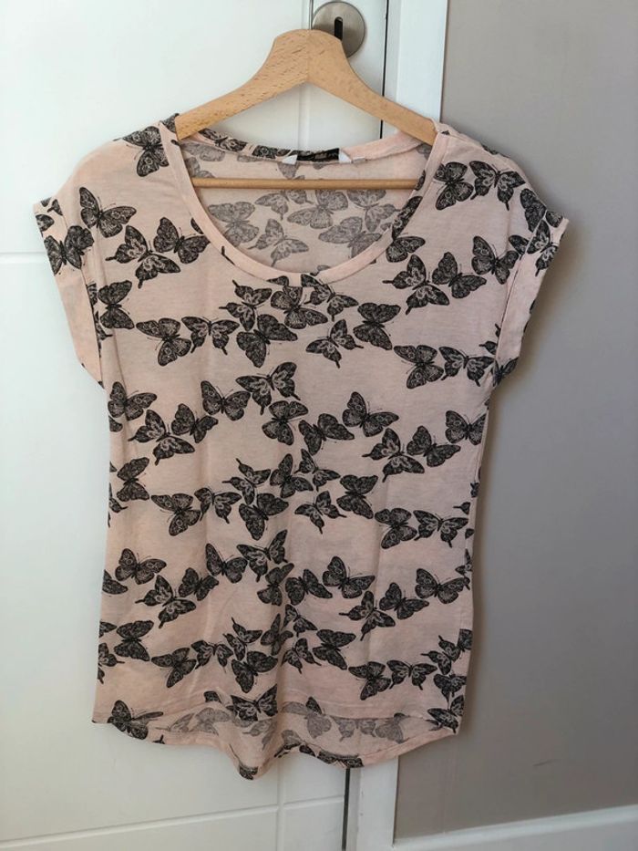 T shirt rose papillons