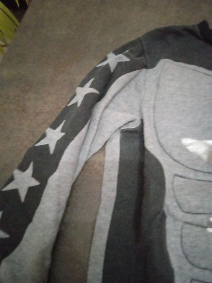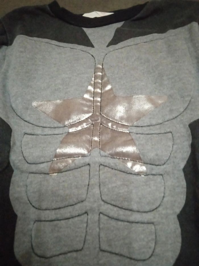 Très bon état pull fuite imitation torse de super-héros gris noir et étoile argenté