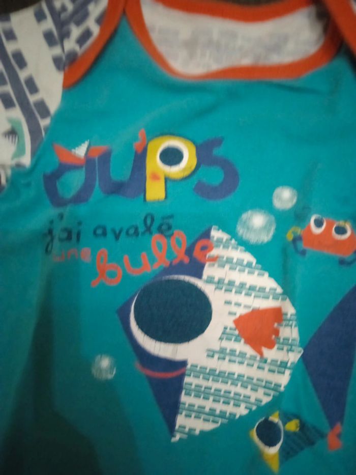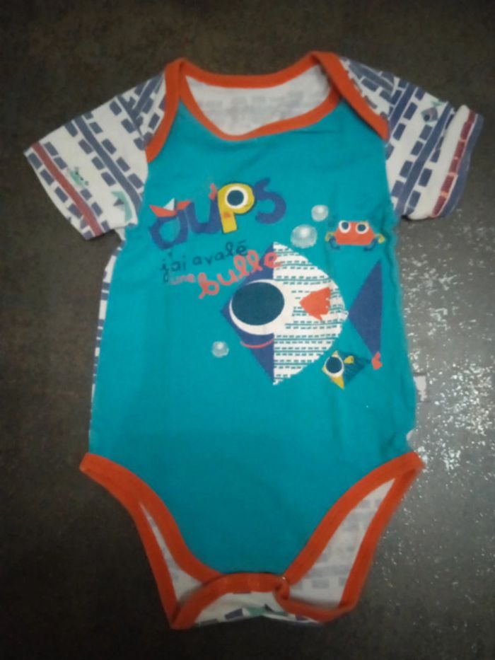 Très bon état body bleu petit béguin inscription oups j'ai avalé une bulle petit poisson