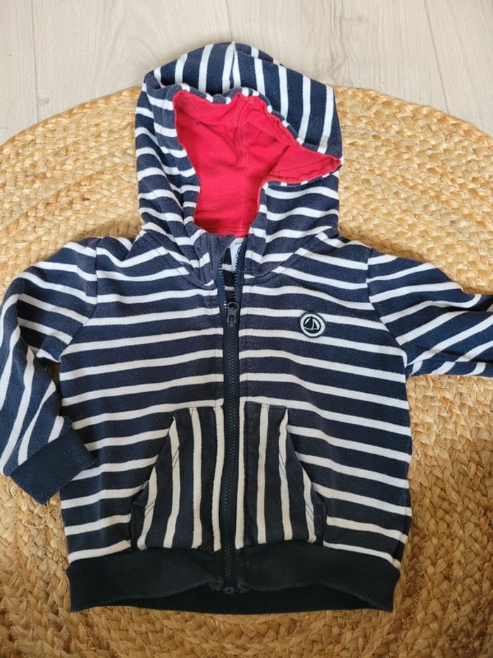 Gilet rayé bleu et blanc de la marque Petit bateau avec capuche Taille 18 mois