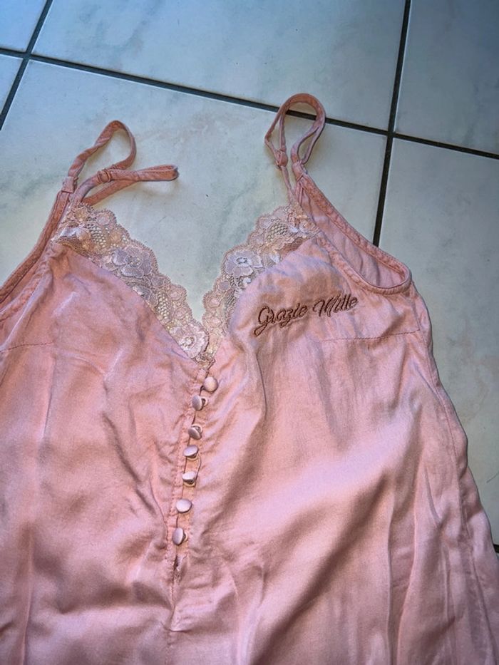 Taille xs elle a une toute petite déchirure mais rien de bien méchant voir la dernière photo . Matière très légère