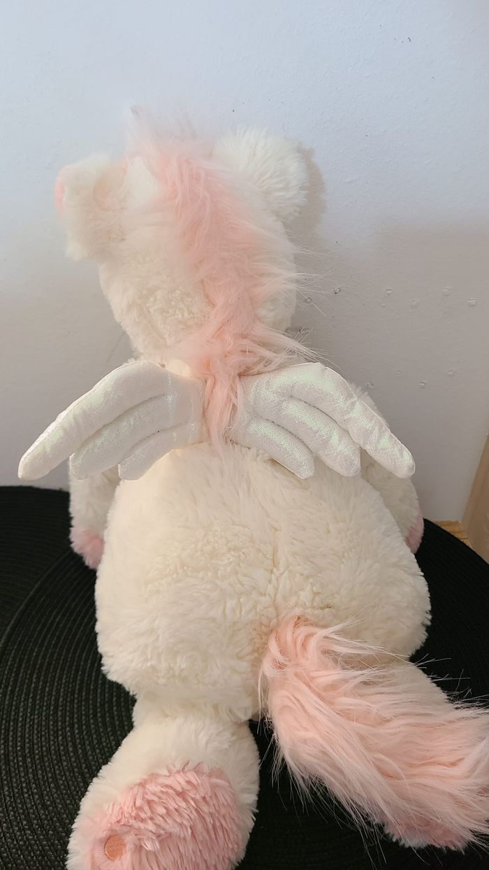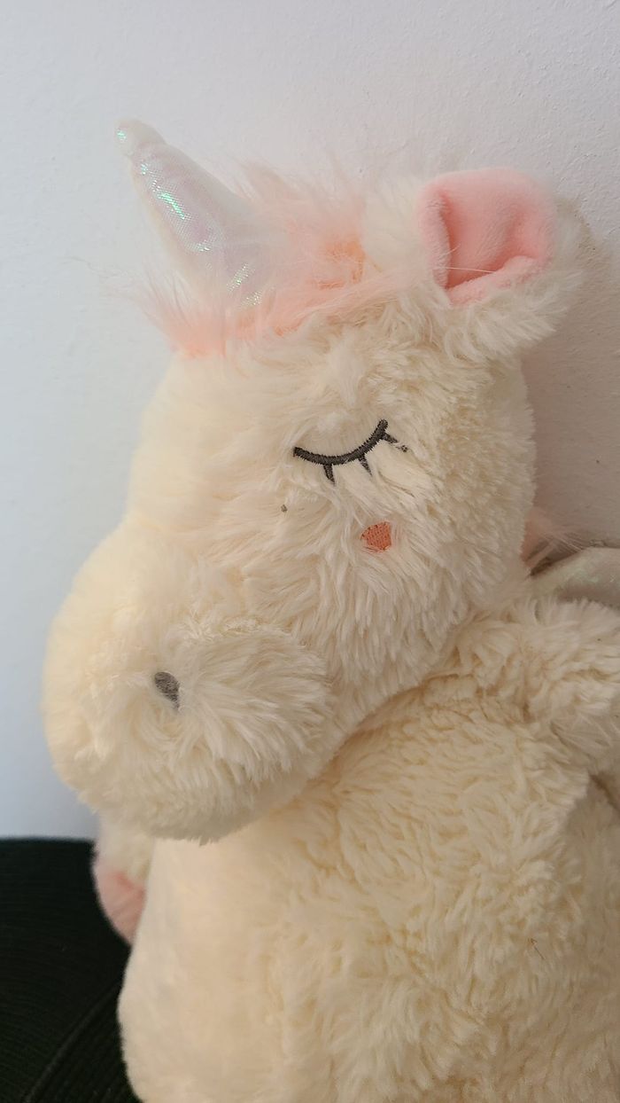 Peluche licorne ETAM range pyjama doudou bouillotte blanc rose ailes blanches 45 cm - photo numéro 7