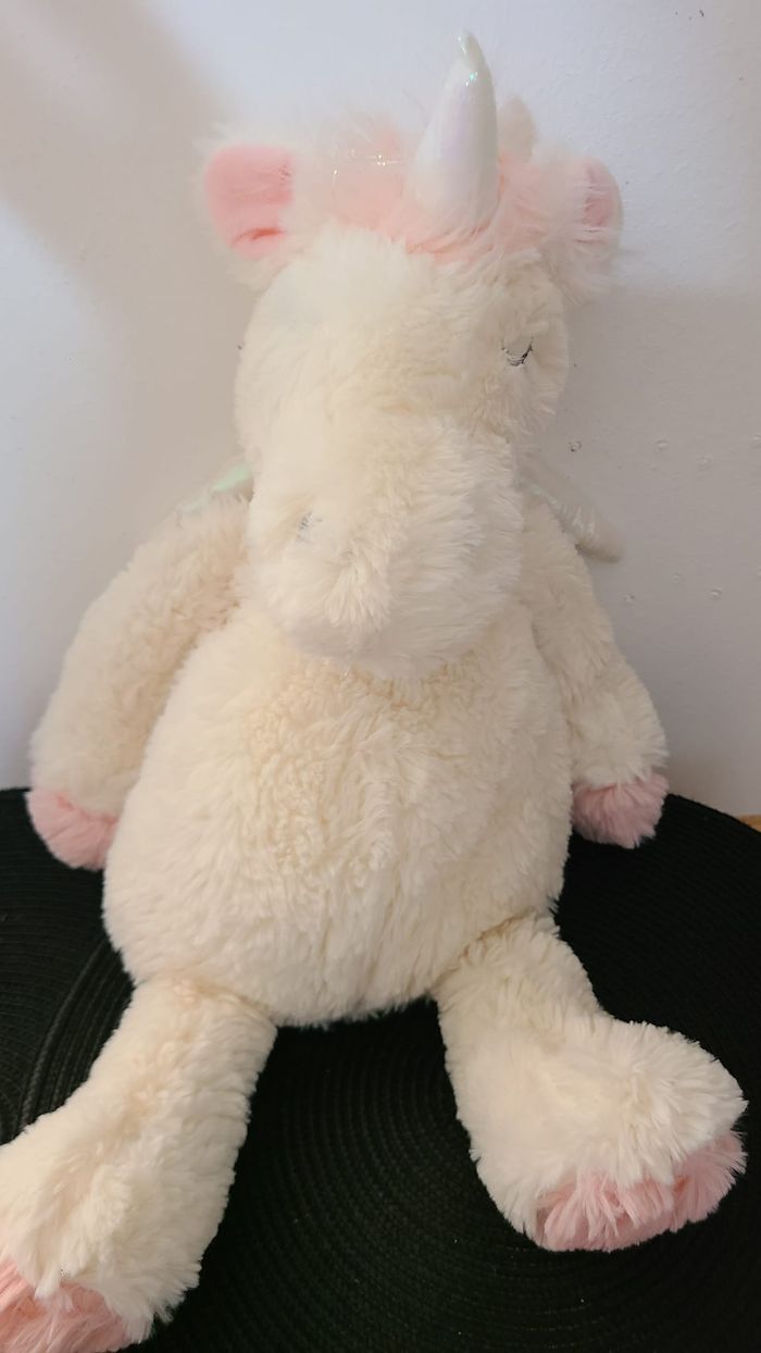 Peluche licorne ETAM range pyjama doudou bouillotte blanc rose ailes blanches 45 cm 26