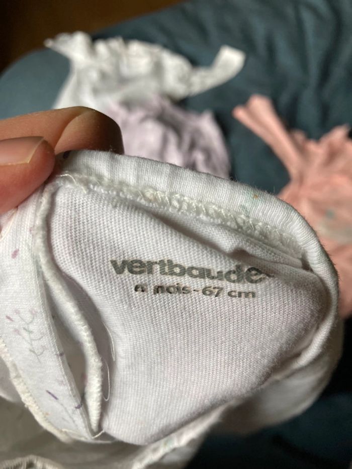 Deux pyjamas vert baudet Lila et blanc à petites fleurs Un blanc Kiabi Un rose orchestra qui a un léger trou sur une pression Très bon état