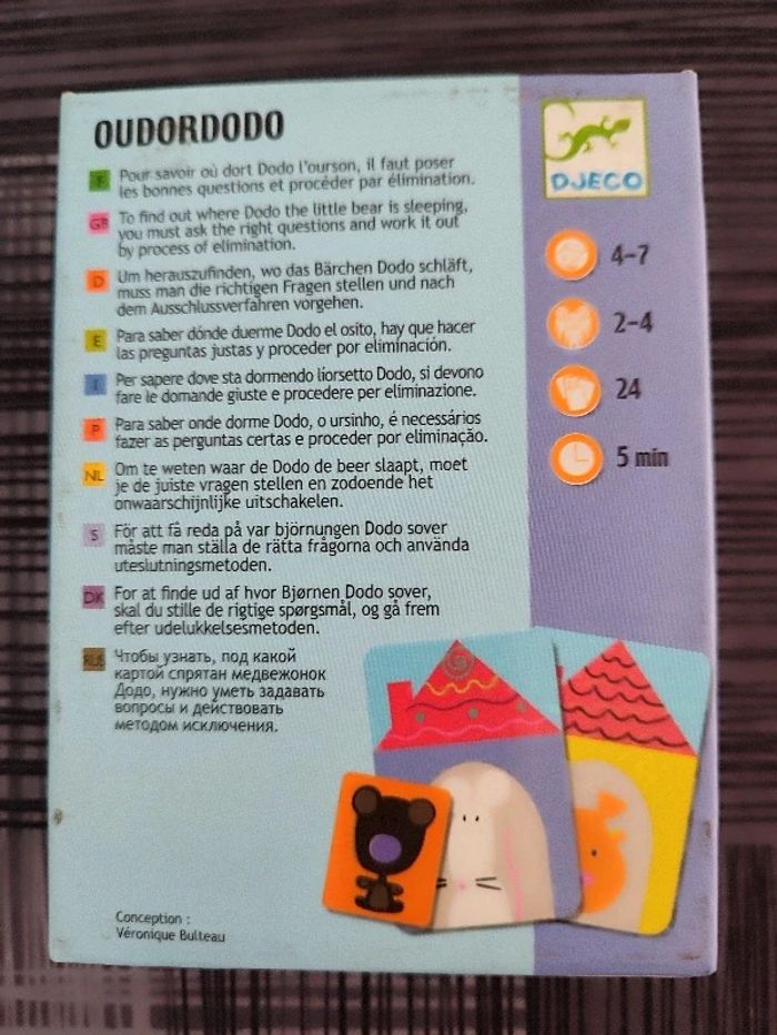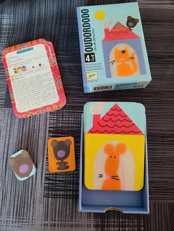Voici le jeu Oudorododo, un jeu de déduction amusant pour les enfants de 4 à 7 ans. Ce jeu coloré et ludique met en scène des personnages mignons comme un chat orange et un ours en peluche. L'objectif est de faire des associations logiques pour résoudre les énigmes. Avec ses illustrations attrayantes et son concept simple, ce jeu est idéal pour développer les capacités de raisonnement des jeunes joueurs. Il a été très peu utilisé et il est complet. - Jeu de déduction pour 4-7 ans - Illustrations colorées et personnages adorables - Développe les capacités de raisonnement - Très bon état, peu utilisé