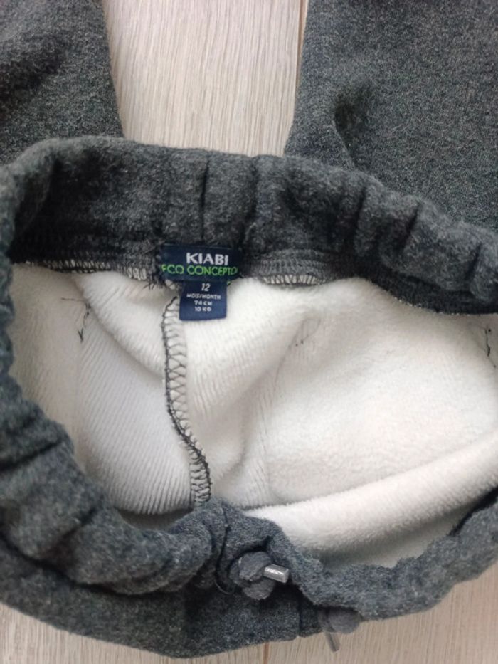 Pantalon Kiabi taille 12 mois, 74cm. Entièrement doublé à l'intérieur avec tissus très doux et chaud. Très bon état général mais léger accroc sur le bas (voir photo). #ccj1367garçon12mois