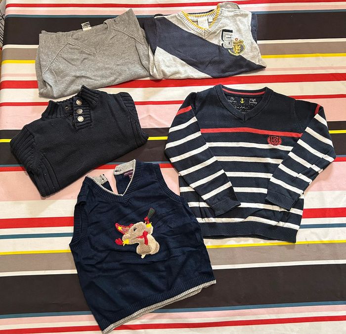 Lot de 4 pulls et 1 sans manche Bon état Taille 24 mois #ladiet72taille24moisgarcon #ladiet72taille2ansgarcon