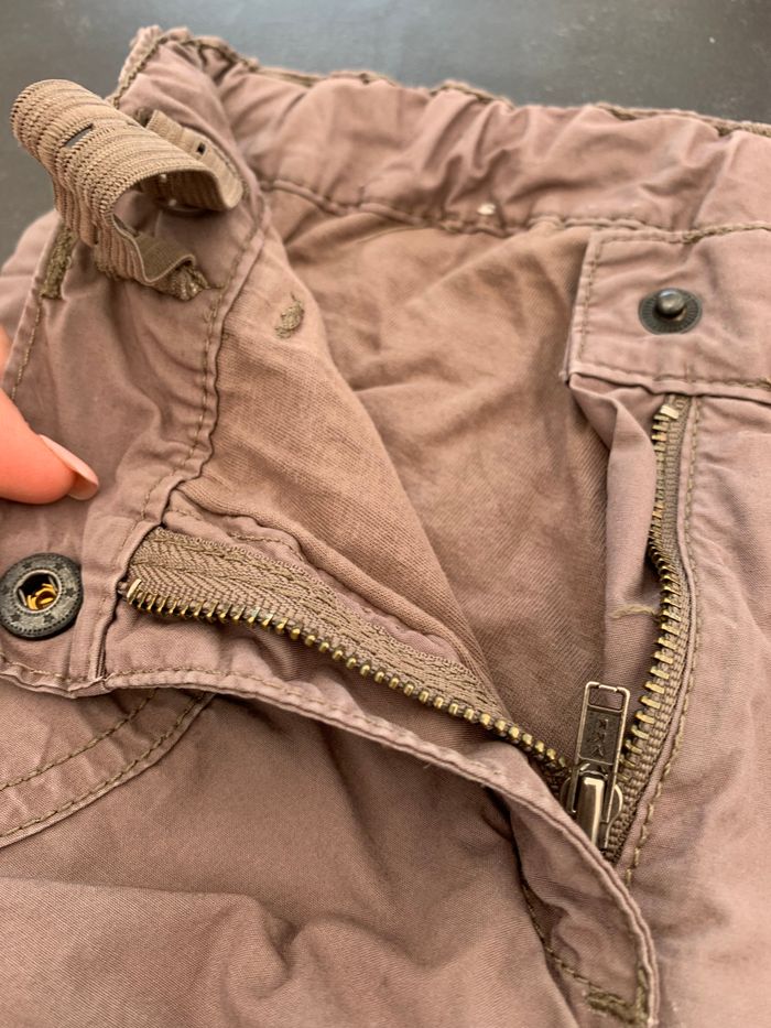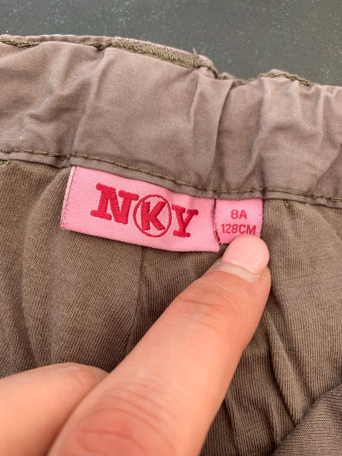 Pantalon de couleur marron, doublé à l’intérieur. Taille et bas de jambes élastiques, fermeture éclair, bouton pression et élastique de serrage à l’intérieur. En état moyen car il a été porté. Pas de tâche ni trou. Taille 8 ans, marque NKY.