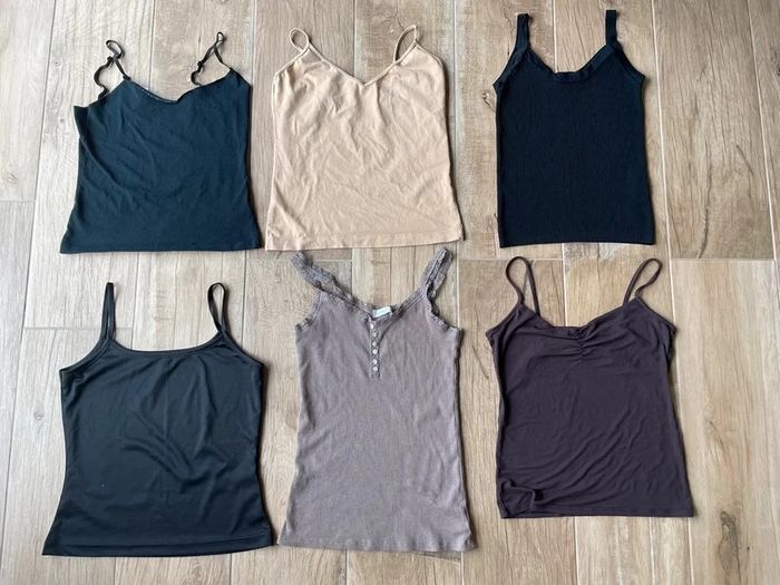débardeur porte mais bon état taille 36/38 les deux marque en taille 40 tailles petit marques camaïeu nafnaf promod etam gabriella frattini