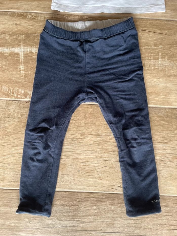 taille 24 mois haut neuf legging réversible porte côté rose du coup trou sur les fesses voir photos mais impeccable du côté bleu pasde bouloche
