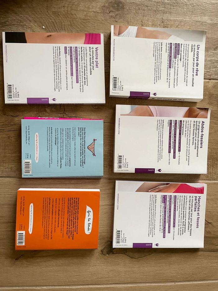 les livres n’ont jamais été ouvert donc neuf et j’ai mis petit colis 😉 ils sont tous de Lydie raisin en 10-15 min par jours un corps de rêve ❌ vendu abdos fessiers ❌vendu hanches et fesses parfaites ventre plat le corps de rêve des paresseuses le centre plat des paresseuses