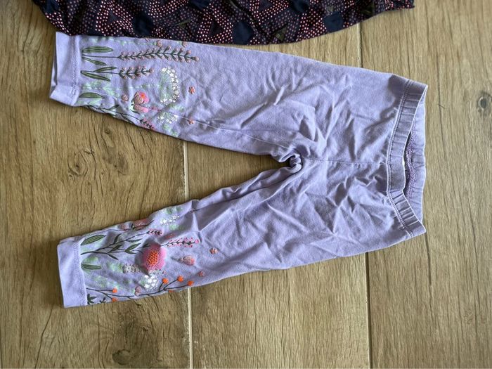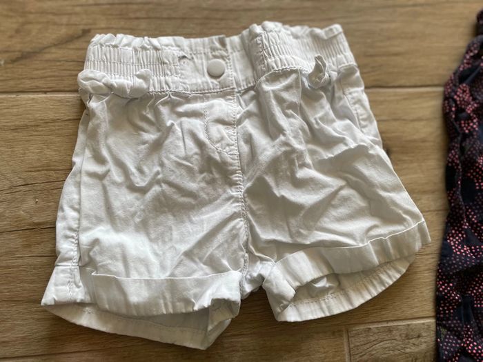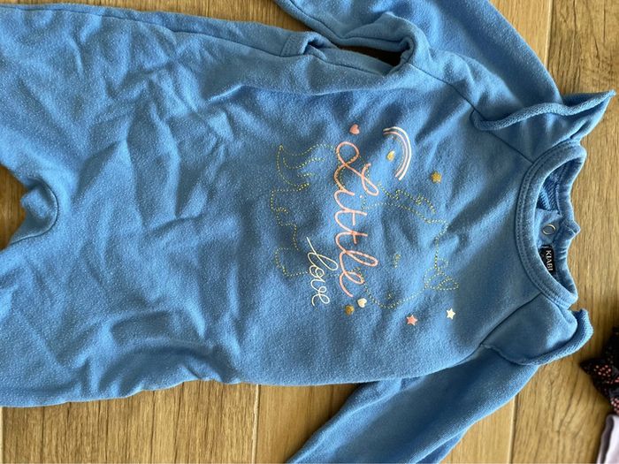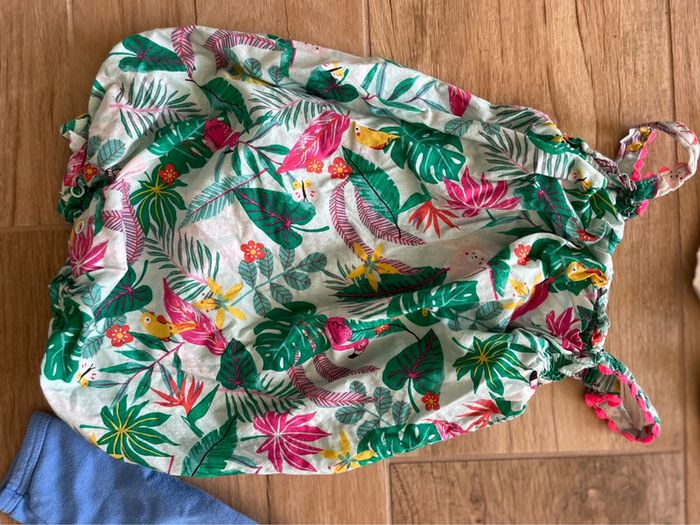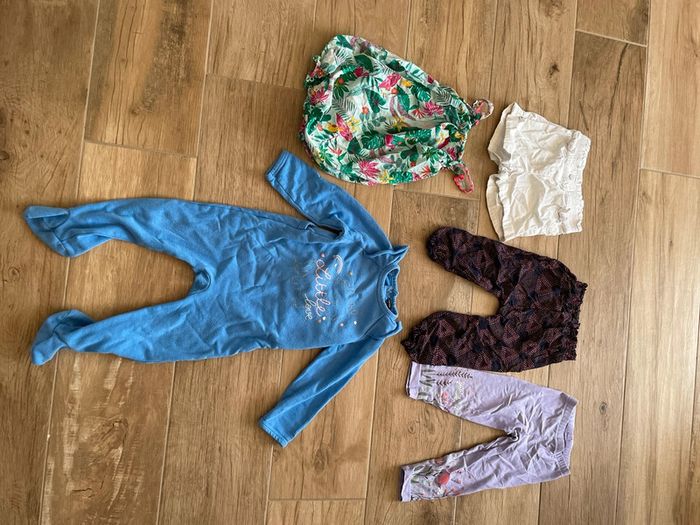 tout est en taille 24 mois la combinaison bloomer est H&M, le legging est un paloma. le reste Kiabi pyjama pantalon très léger et short. tout est en très bon état