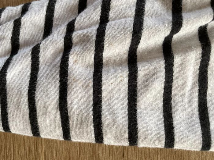 taille 18 m’ois légère tache sur la jambe côté marinière jamais porté du côté noir donc impeccable
