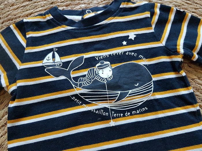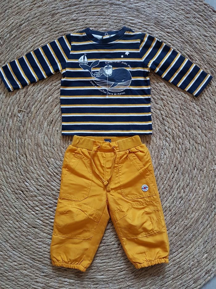 Ensemble 2 pièces T-shirt marinière manches longues et pantalon jaune style jogging. Aucun défaut