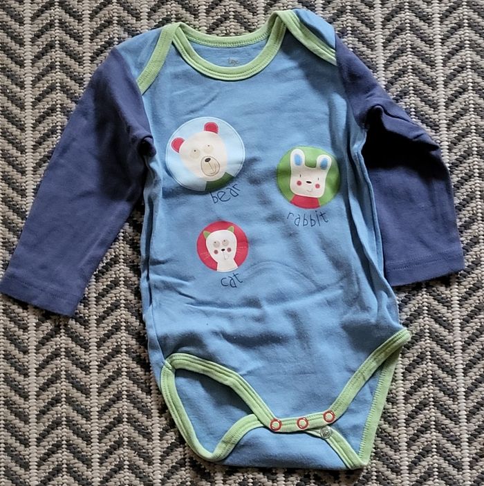 3 bodys Tex dans les bleus manches longues Taille 12 mois.