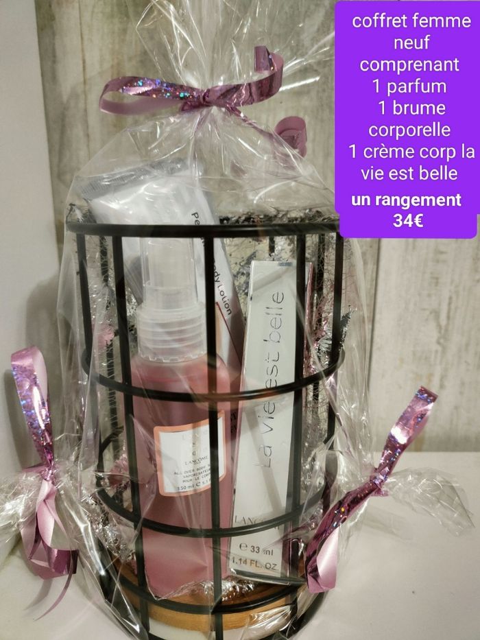 Coffret femme neuf comprenant 1 parfum 1 brume corporelle 1 crème corp la vie est belle 1 rangement