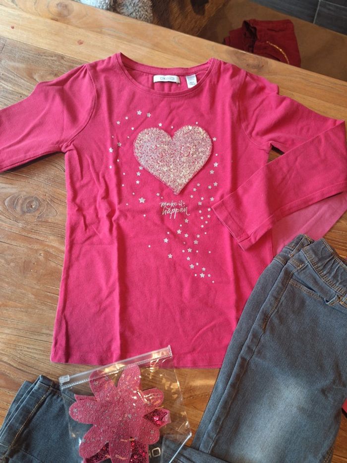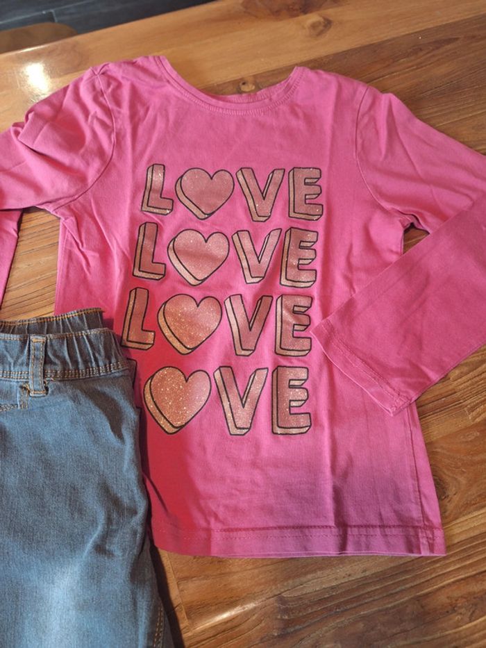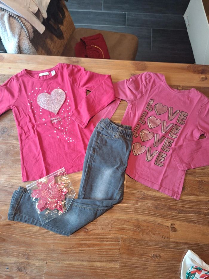 En très bon. État Jean kiabi gris souple Tee shirt cœur avec motif échangeable okaidi Tee shirt love primark #melaniegarriguesfille8ans