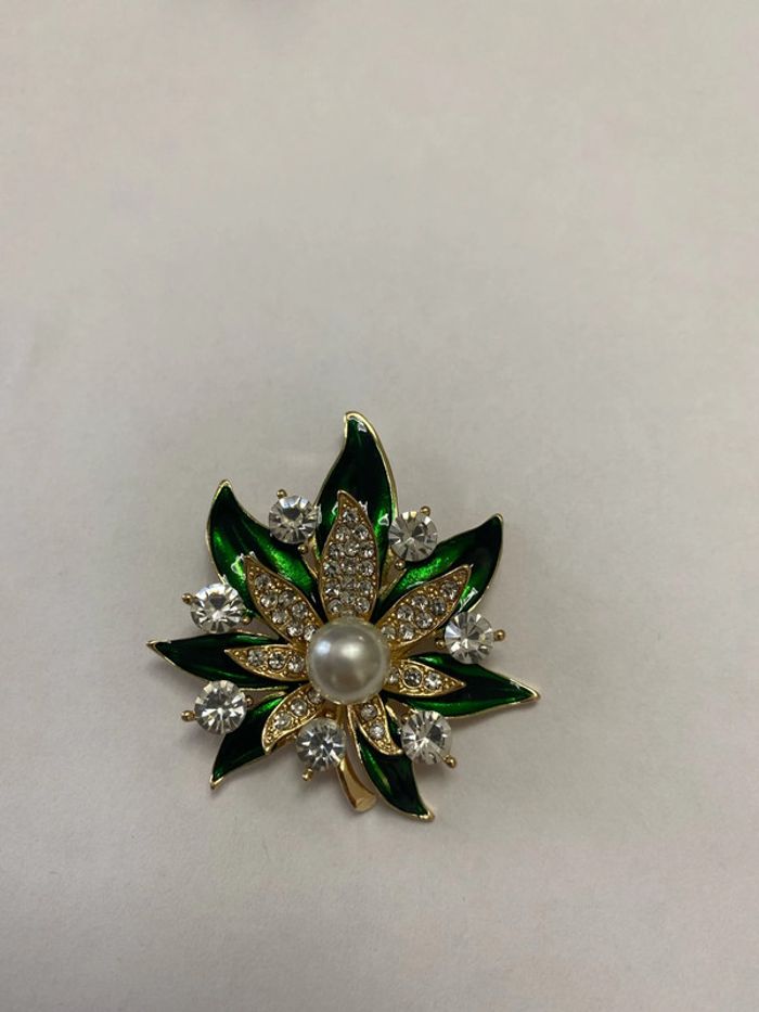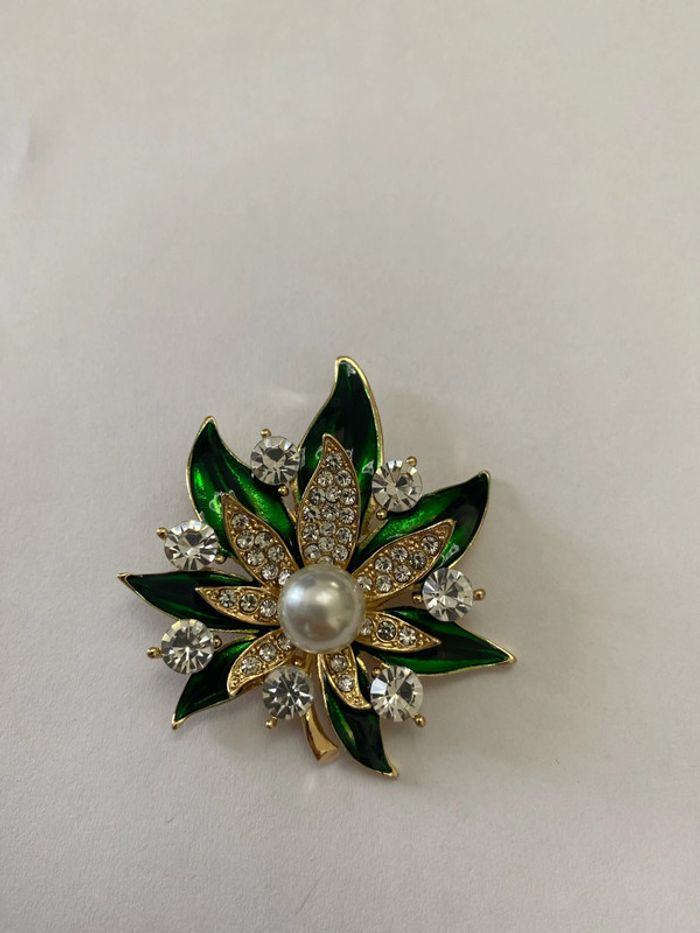 Broche verte et perle - photo numéro 3
