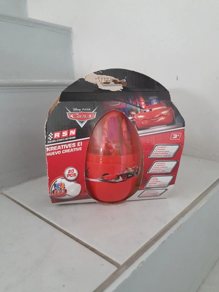 Oeuf cars Contenant 6 feutres 6 crayons gras 6 autocollants 2 tampons Neuf jamais utilisé, mais carton un peu abîmé cf photo N'hésitez pas à aller voir mes autres ventes classées par #eloio #eloiocars #eloiodisney #eloioneuf
