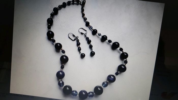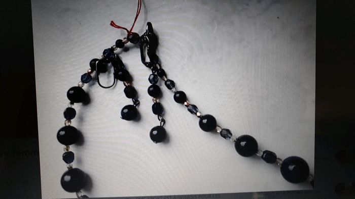 Parure fantaisie femme composée d'un collier et d'une paire de boucles d'oreilles Couleur bleu marine Neuf jamais porté N'hésitez pas à aller voir mes autres ventes classées par #eloio #eloiobijoux #eloiofemme #eloioneuf