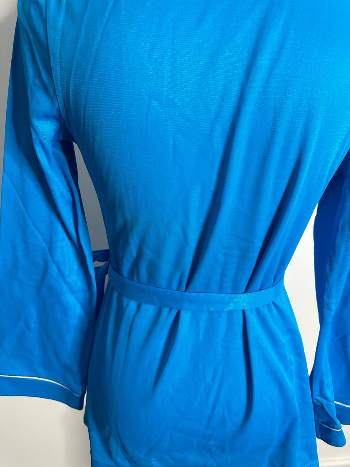 Peignoir kimono bleu broderies blanches Vintage TU - photo numéro 8
