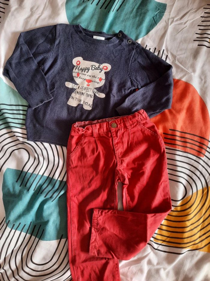 ‼️Vendu séparément sur demande Lot comprenant : 👕 Pull bleu marine, marque Kimbaloo, en bon état général. 👖 Pantalon rouge, taille élastique, coupe carotte, marque Cyrillus, en très bon état. Retrouvez tous mes articles ⬇️ #catandco_3ans #catandco_pullsenfant #catandco_pantalonsenfant