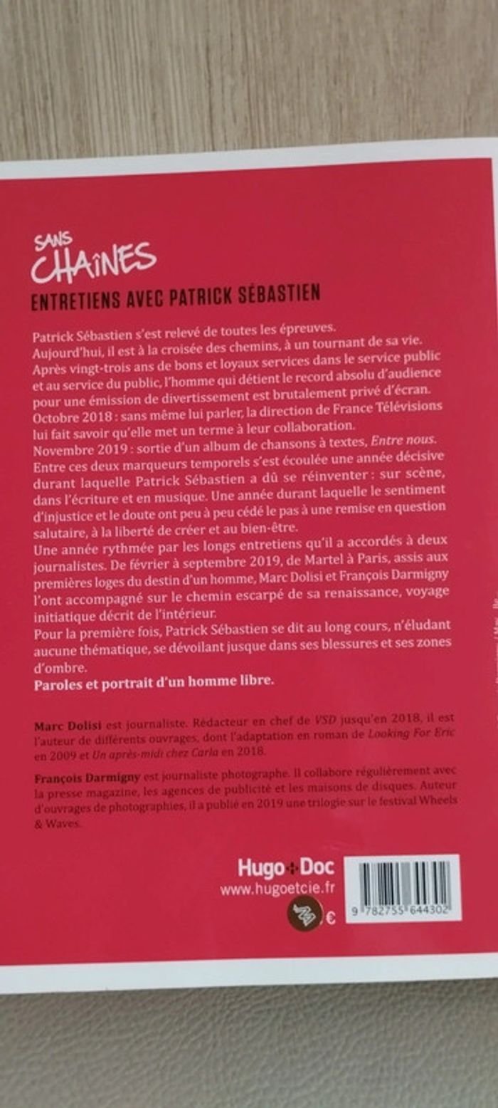 Sans chaînes. Entretien avec Patrick Sébastien de Marc Dolisi et Françoise Darmigny Lecture confort Édition Hugo Doc 2019 Très bon état. #linejacromans