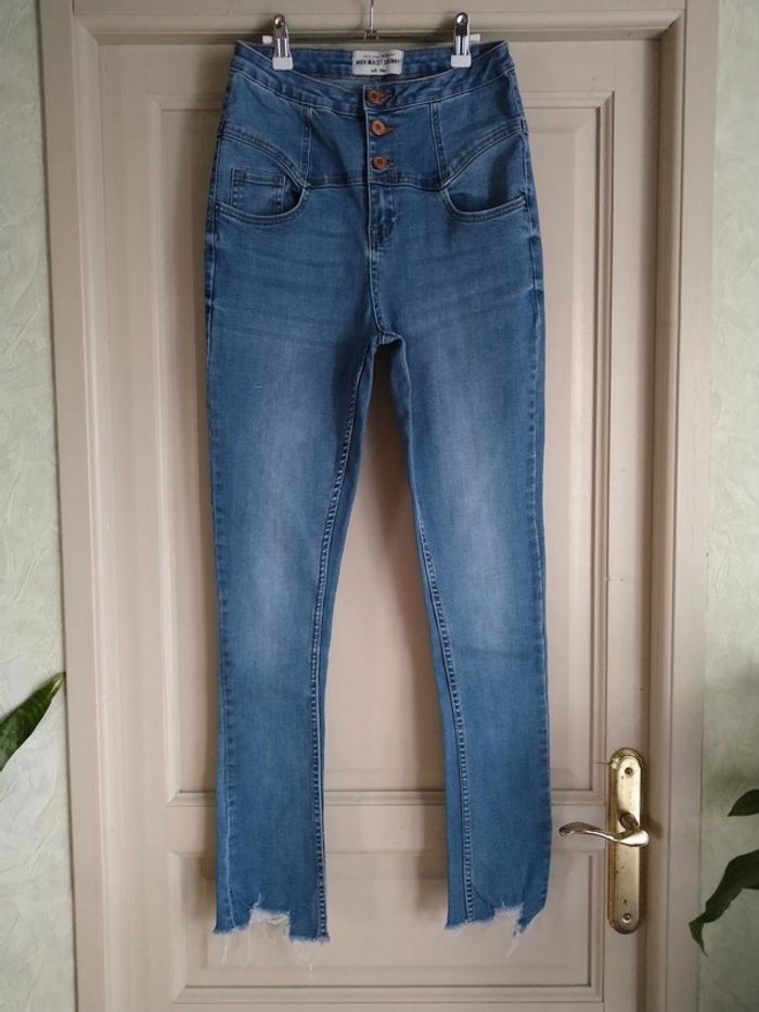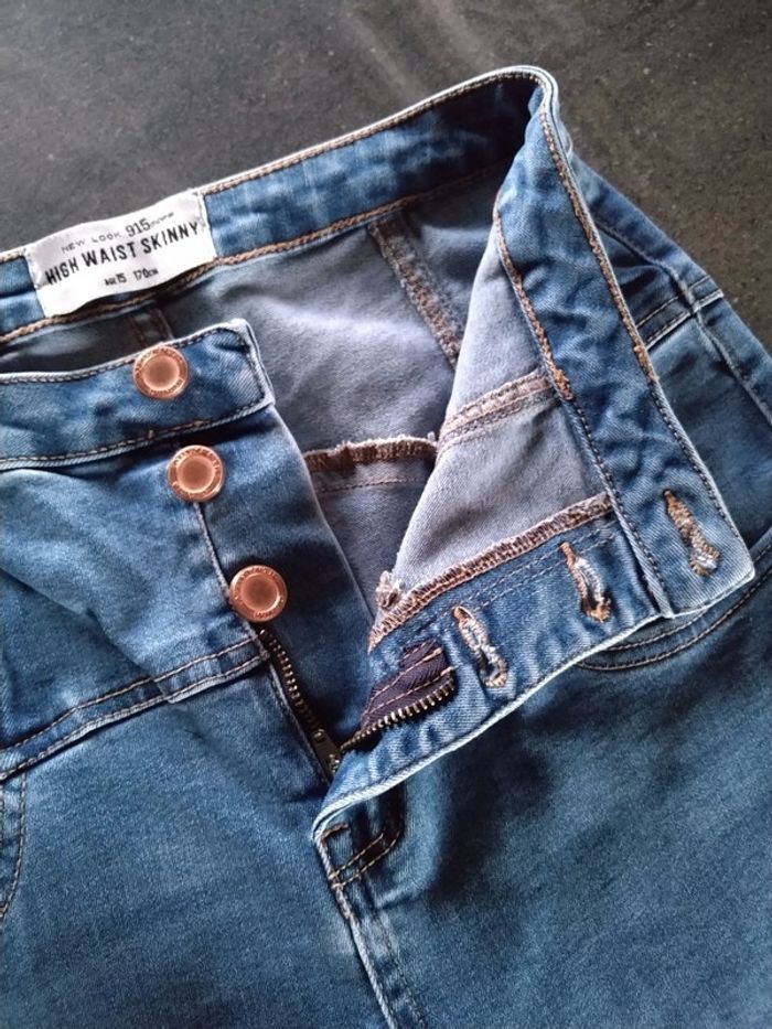 Jean/Pantalon Marque New Look 915 Generation Taille 15 ans, 170 cm • Coloris bleu avec un effet délavé • Fermeture par boutons et fermeture éclair • Taille haute, High Waist Skinny • 4 poches • Bas des jambes effiloché • Stretch Longueur totale : 109 cm Longueur entrejambe : 76 cm En très bon état #evelyne_filles_15ans #evelyne_filles