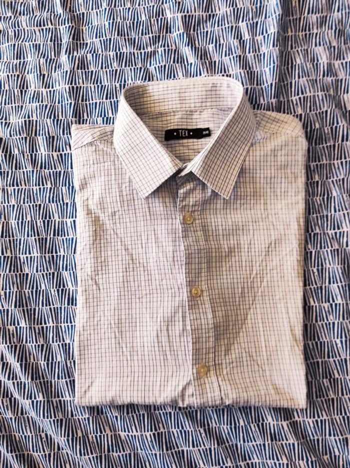 Chemise blanche à carreaux lignes bleu et grise t 39 40 Coupe regular t M L 📦 Emballage soigné et envoi rapide 📤 Préférence avec Mondial sinon me prévenir 🚭 Maison non fumeur 👛 Réduction sur les achats en lot #reductionsurleslots #cadeaudenoel #cadeau #costume #ceremonie