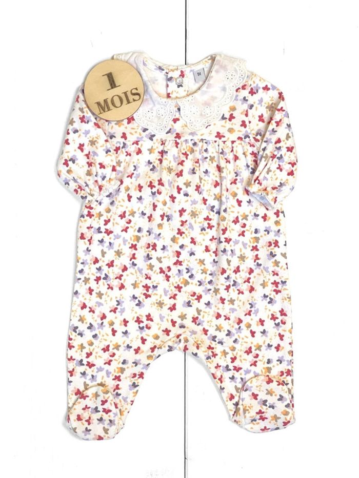 Pyjama coton fleuri, col dentelle