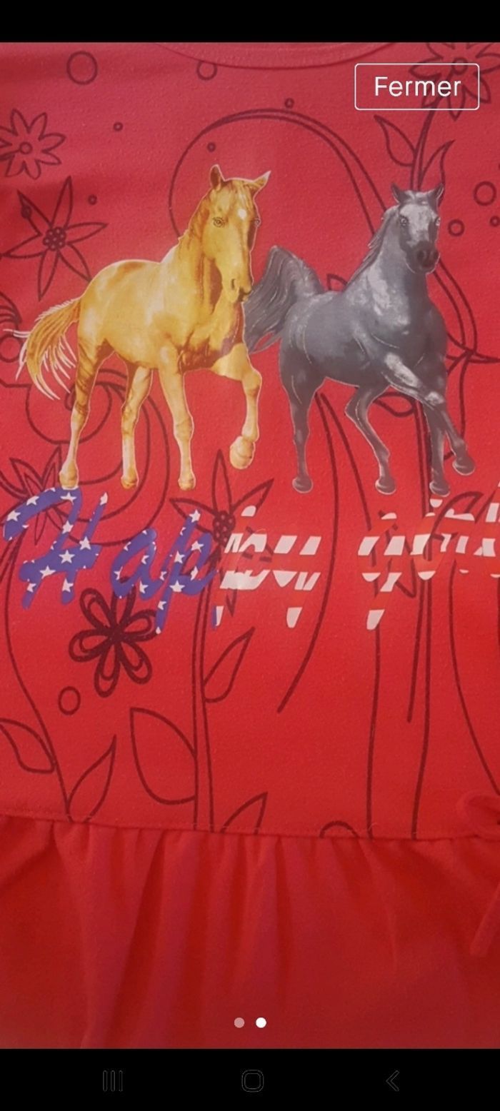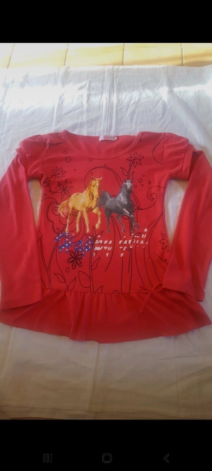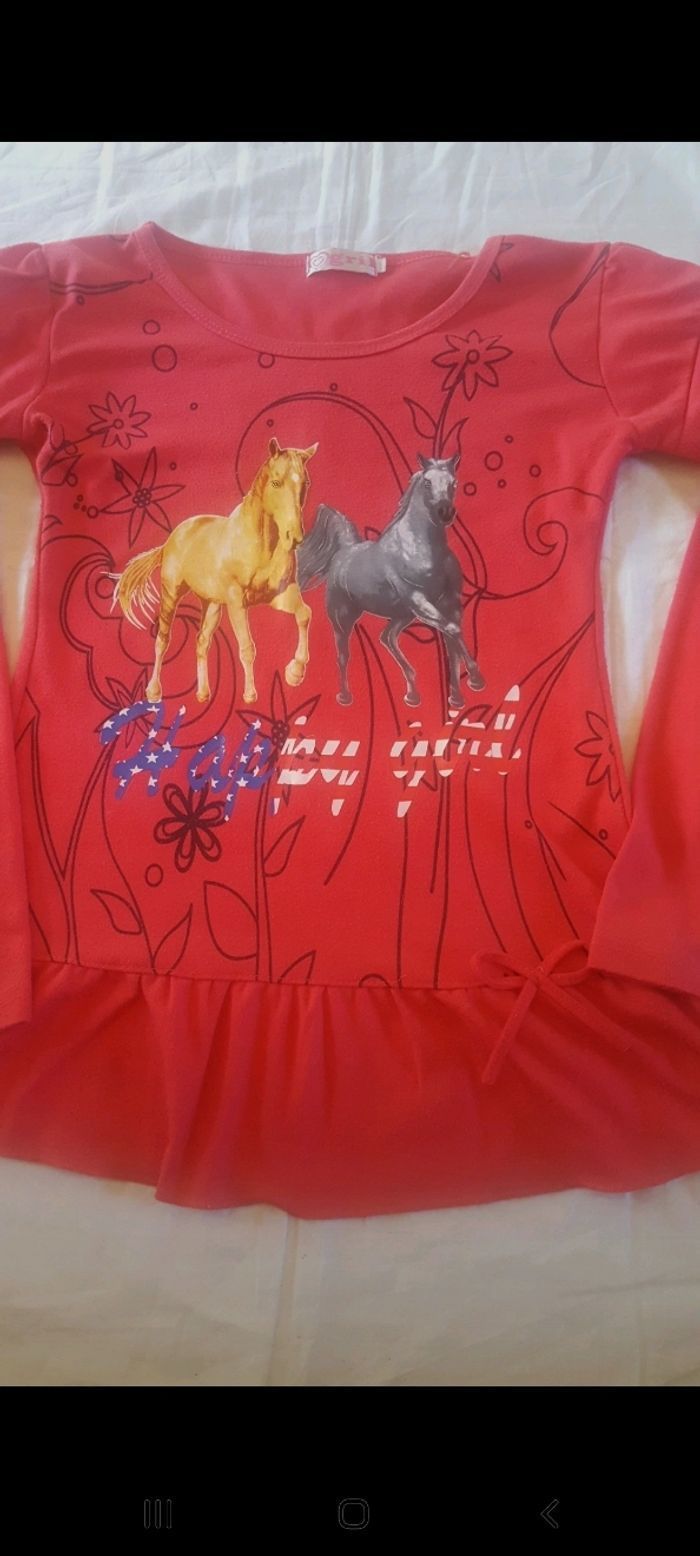 Tunique manches longues rose avec des chevaux . Le bas est un peu évasé . Taille 10 ans