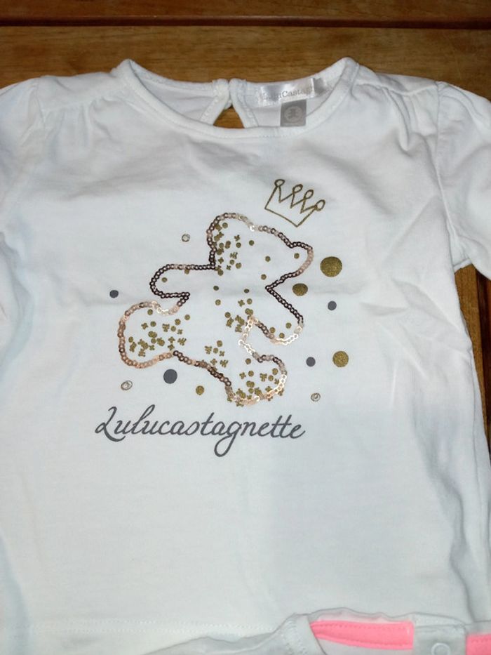 État neuf porter une ou deux fois mais en excellente état le blanc est bien blanc et pas gris et le second est beige Beige le modèle ourson Lulu castagnette de Gémo et le second est blanc marque timbaloo la Halle aux vêtements