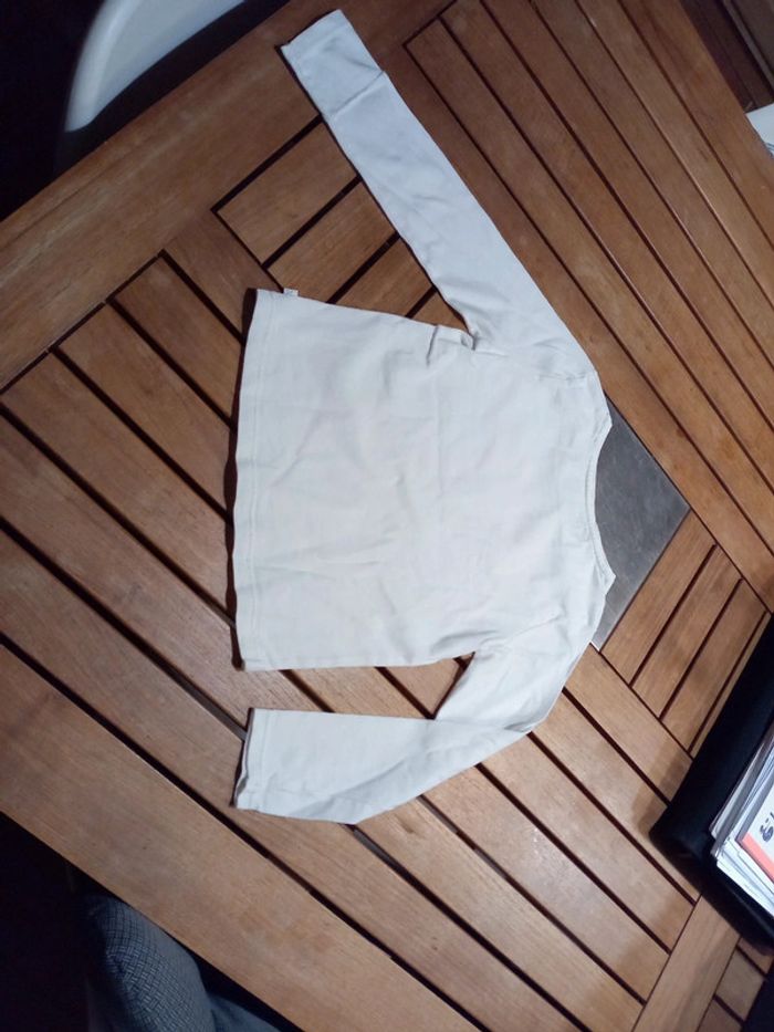 Tee shirt Okaïdi ML colori beige motif bleu canard velours En parfait état comme neuf Peu porté