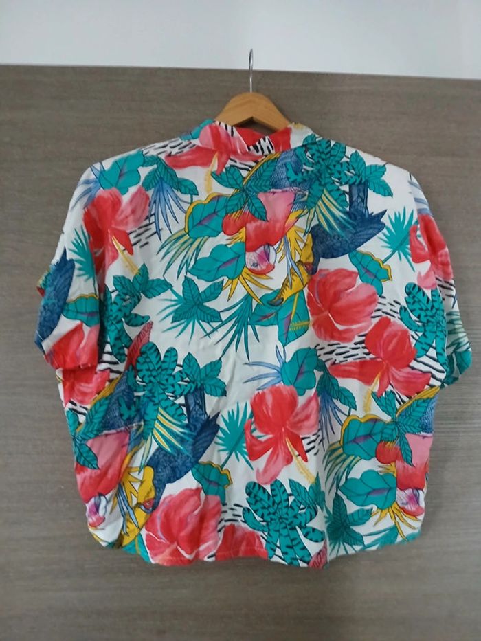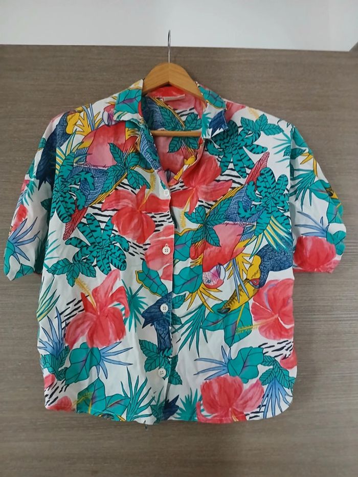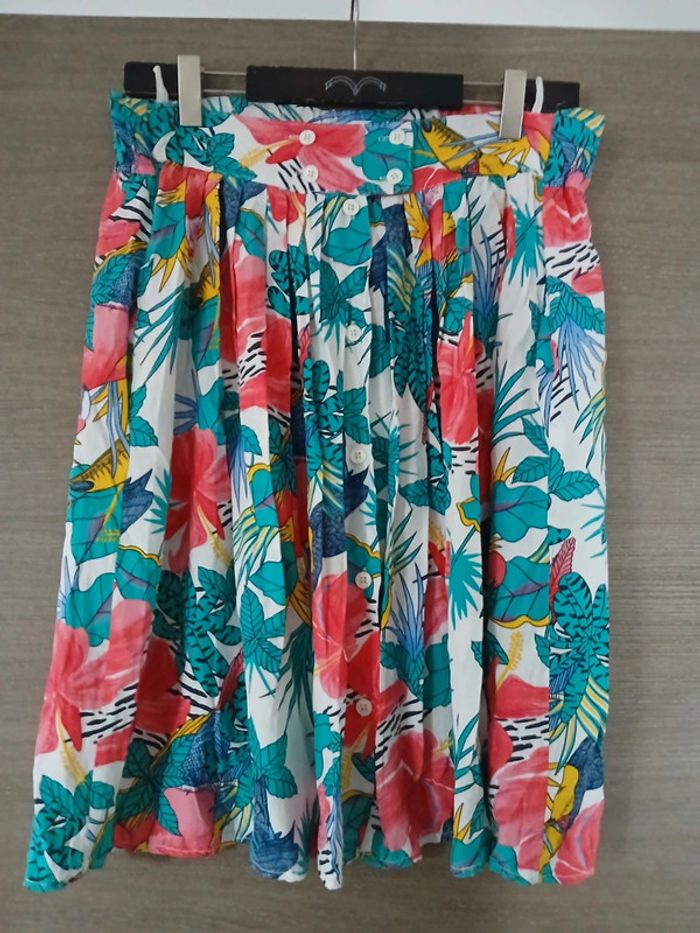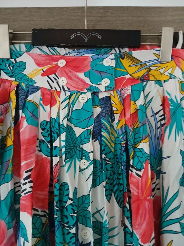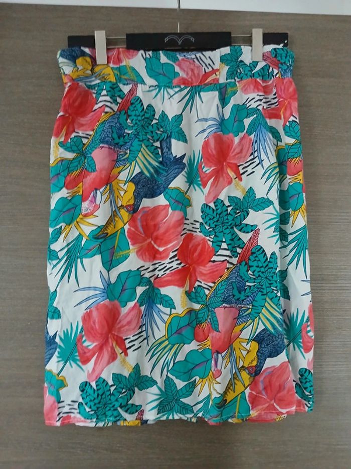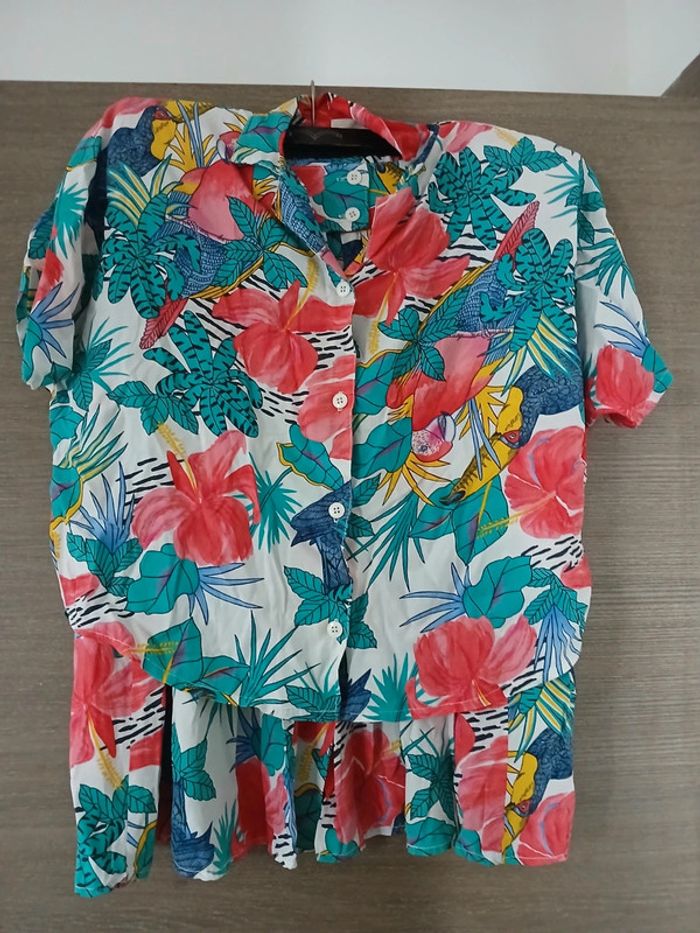 Ensemble chemise et jupe imprimé perroquets et fleurs multicolore Taille 44 Made in France