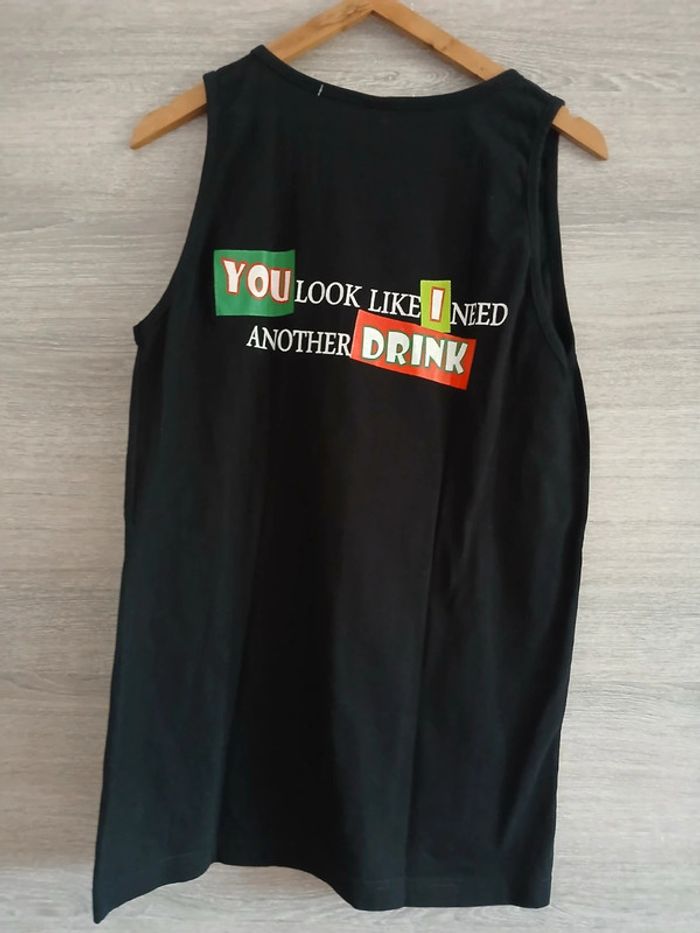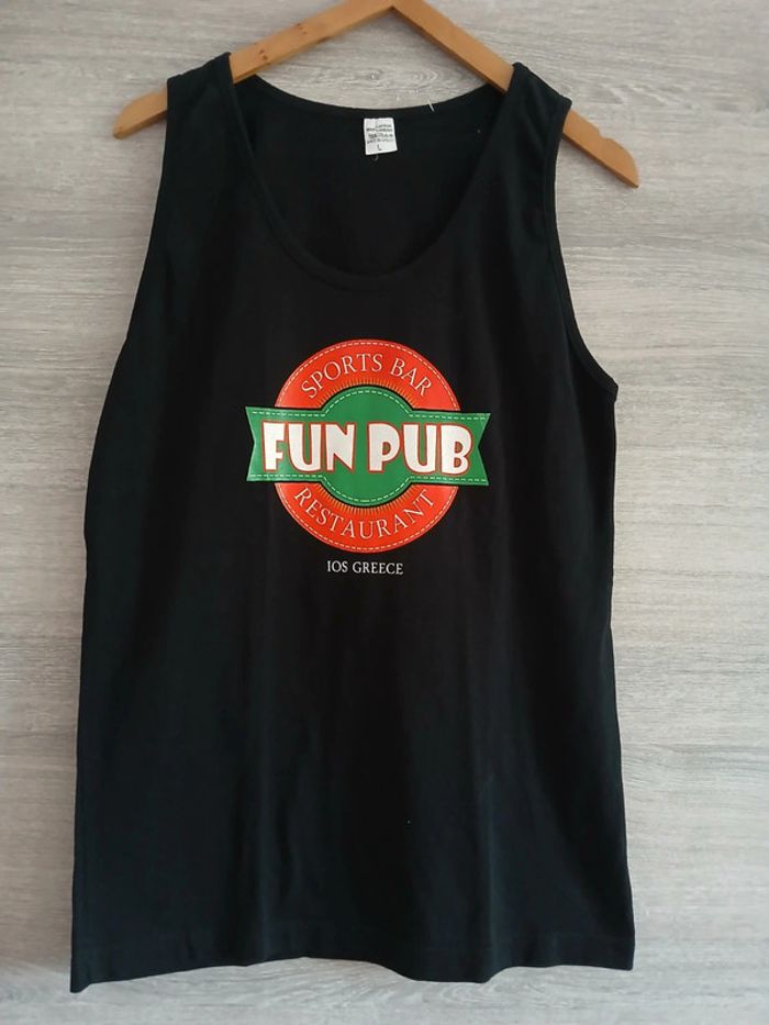 Débardeur noir imprimé Fun pub Made in Grèce 100% coton Taille L