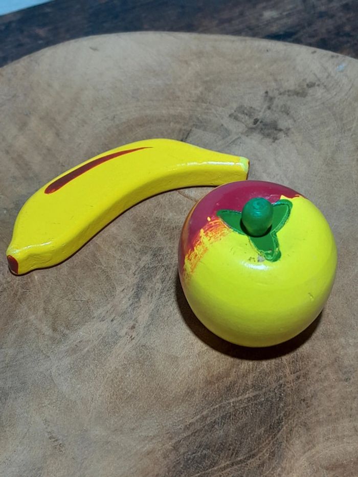 2 minis fruits en bois. Accessoires pour dînette bon état. Vendus comme sur les photos. Consultez mes autres annonces, création de lot possible sur simple demande .🙂
