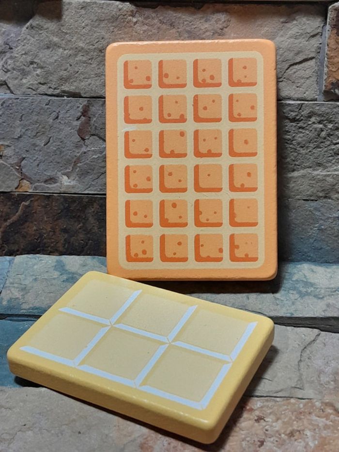 Gauffre et chocolat blanc en bois. Accessoires pour dînette bon état. Vendus comme sur les photos. Consultez mes autres annonces, création de lot possible sur simple demande .🙂