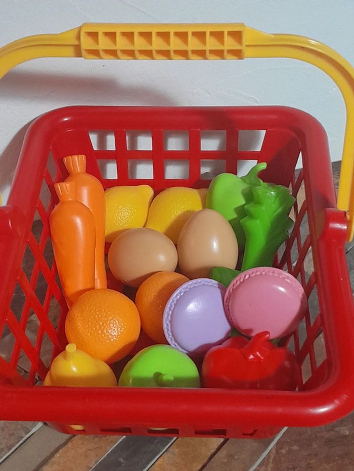 Panier du primeur!!! Panier rouge offert! Accessoires pour dînette bon état. Vendus comme sur les photos. Consultez mes autres annonces, création de lot possible sur simple demande .🙂