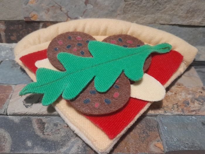 Part de pizza en feutrine. Accessoires pour dînette bon état. Vendus comme sur les photos. Consultez mes autres annonces, création de lot possible sur simple demande .🙂