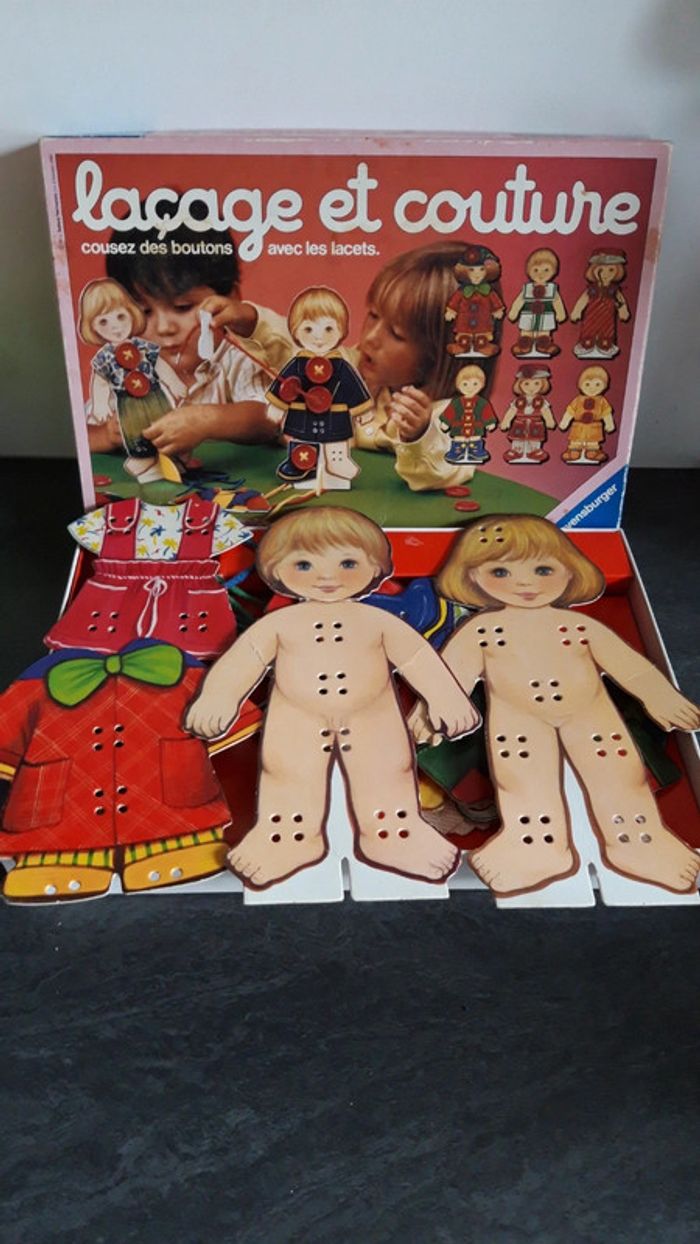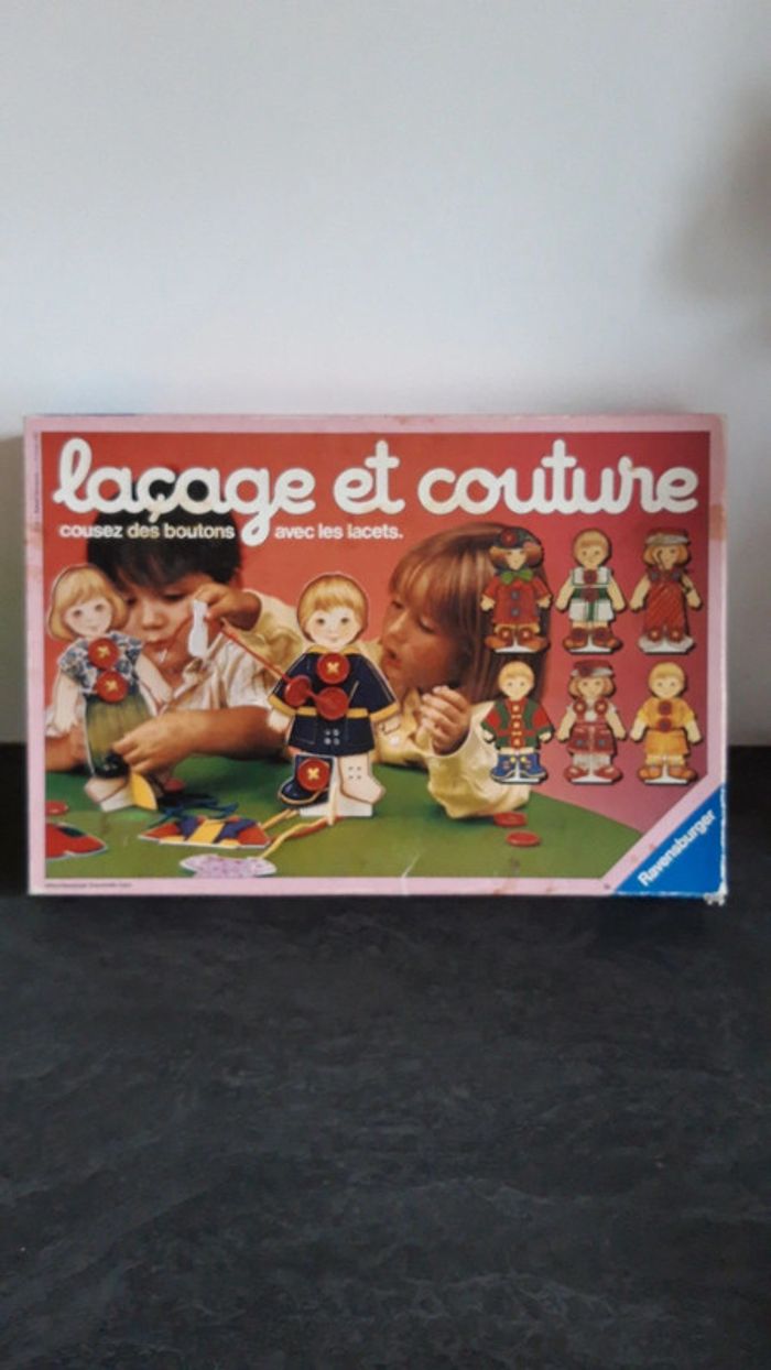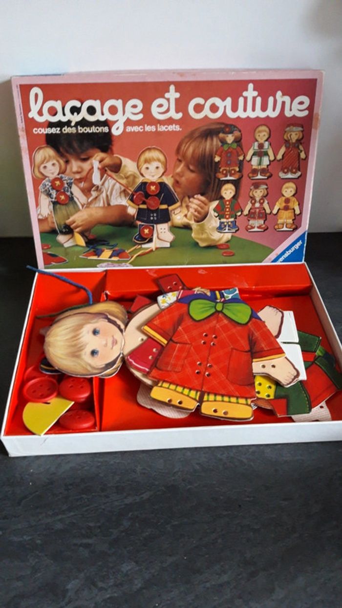 Cousez des boutons avec les lacets Jeu vintage