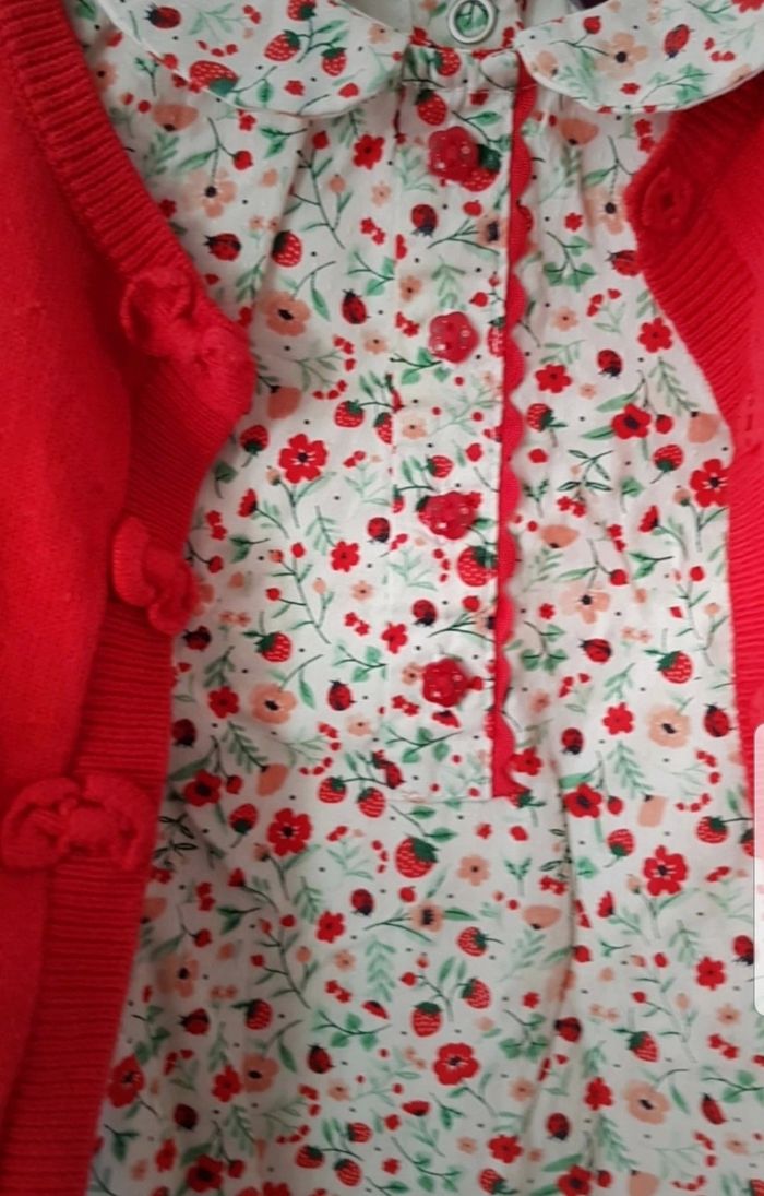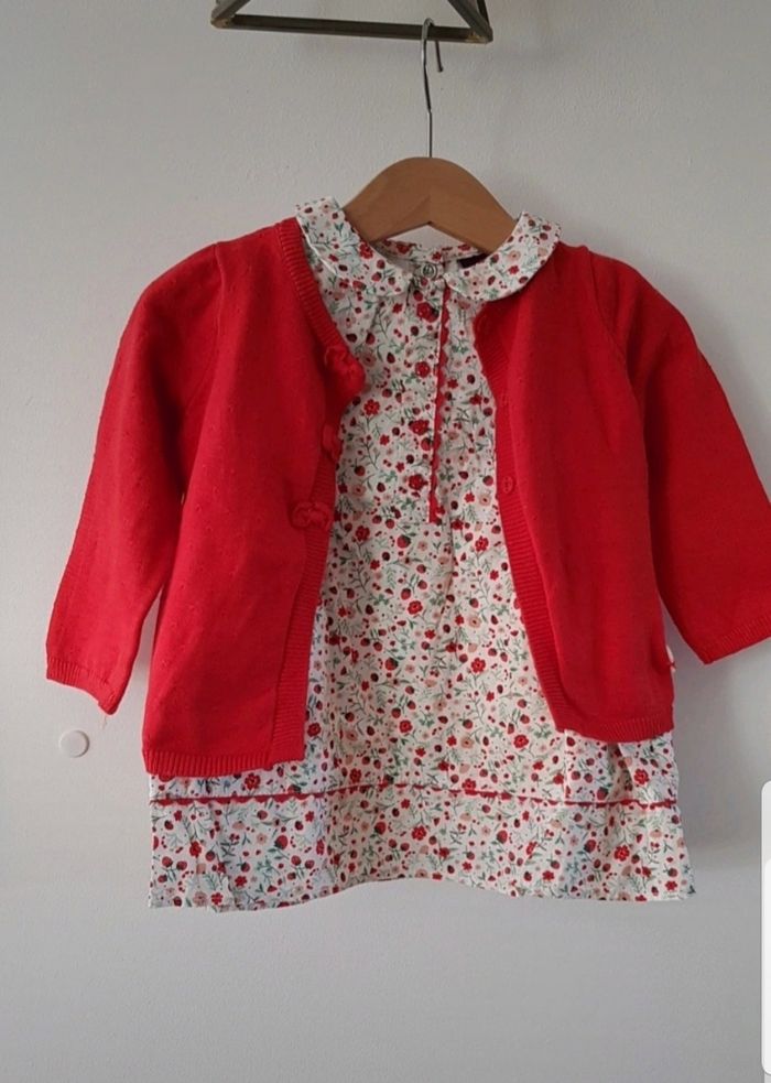 Tres bel ensemble sergent-major en 9 mois composé d'une robe, d'un gilet et d'une culotte en tres bon etat car peu porté