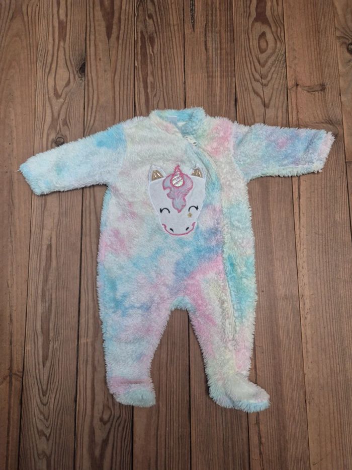 Joli pyjama polaire licorne en taille 6 mois. En parfait état.