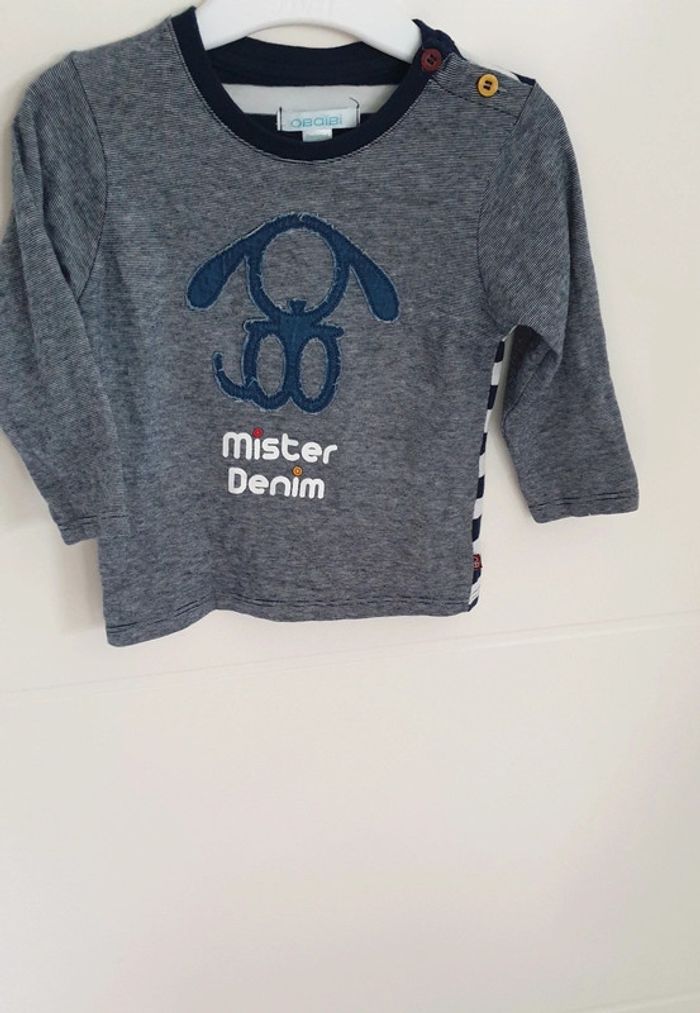 T-shirt manches longues, mister denim, rayé blanc, taille 12 mois, Obaïbi - photo numéro 1