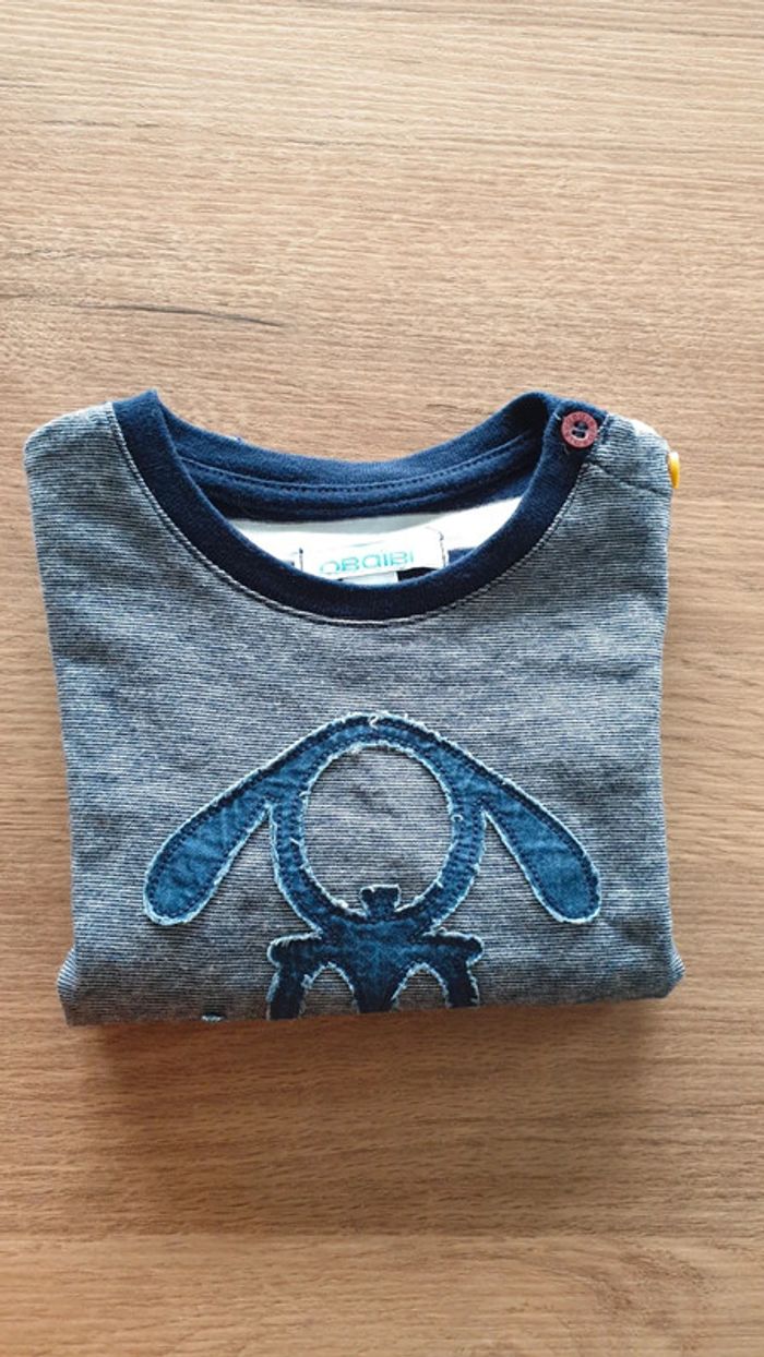 T-shirt manches longues, mister denim, rayé blanc, taille 12 mois, Obaïbi - photo numéro 3