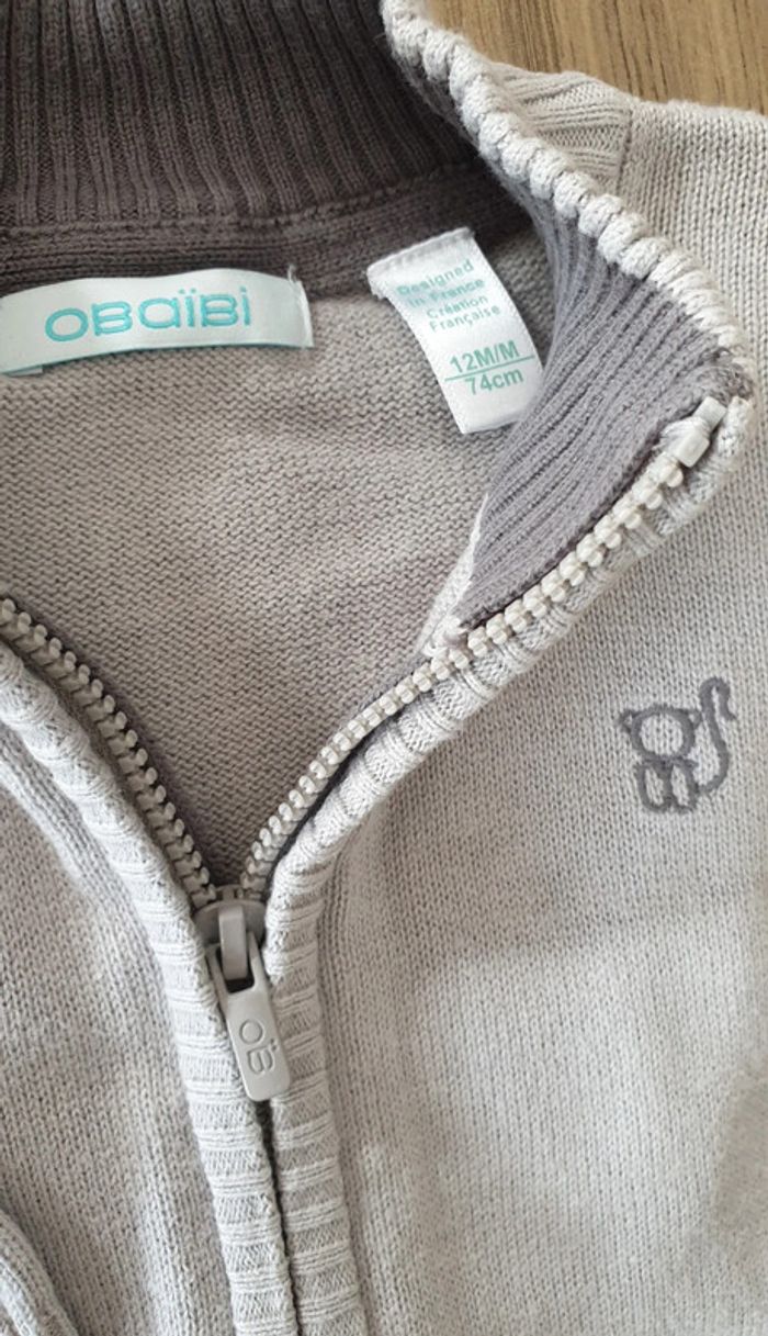 Gilet gris zippé, taille 12 mois, Obaïbi - photo numéro 2