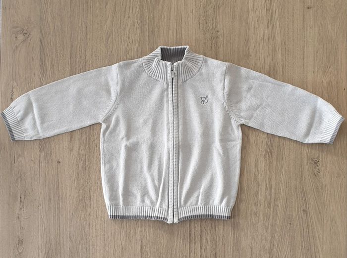 #cassandraft5bebetaille12mois Gilet gris, taille 12 mois, Obaïbi. En parfait état. Prix d'achat 18,99€. #gilet #zippé #col #montant #bébé #gris #clair #12mois #obaibi #okaidi